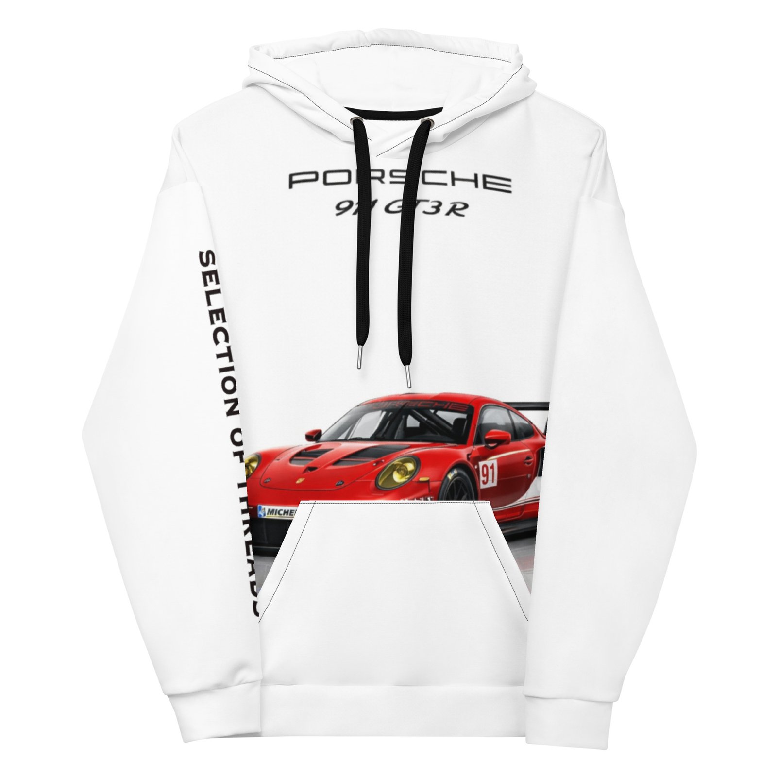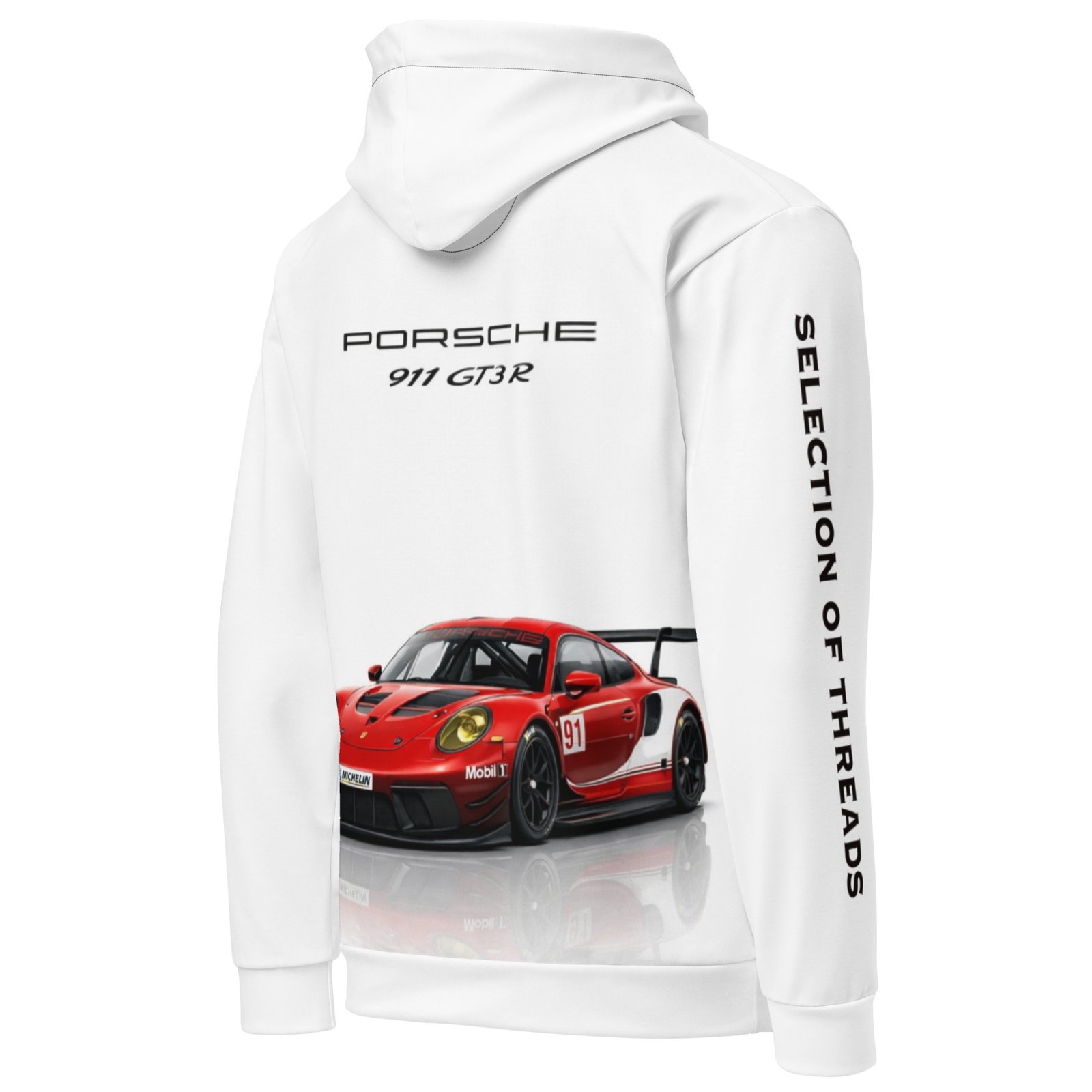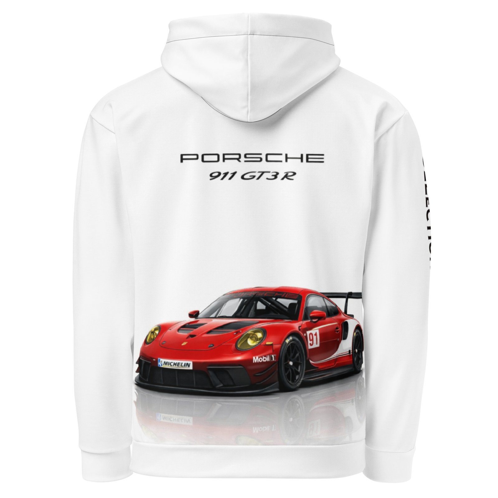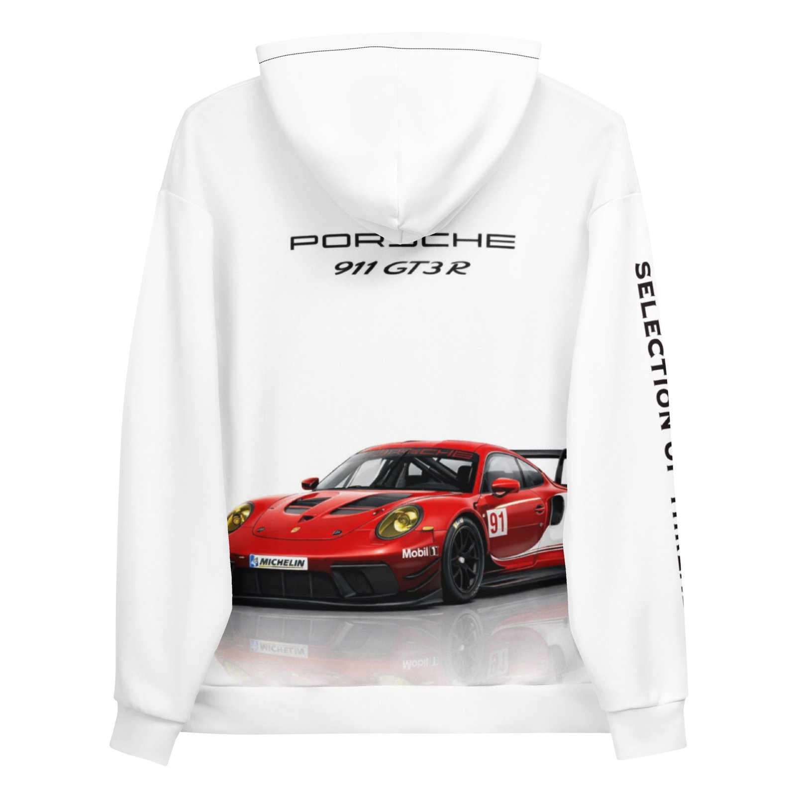 • Double-lined hood with design on both sides